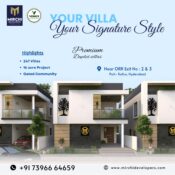 Offering spacious ready-to-move-in homes with world-class amenities in an excellent location, these villas are crafted to enhance your living experience. Whether you seek a permanent residence or a smart investment opportunity, Mirchi Developers promises you the best of both worlds. Seize the chance to own a villa in one of Hyderabad’s most promising residential neighborhoods.